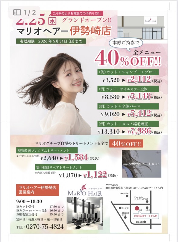 ★マリオヘアー伊勢崎店グランドオープン★